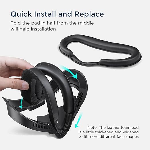 - Comfy Leather Pad, Completely Immersive Experience: 1. The 0.63'' thickened face pad performs much better in pressure reduction than others. 2. Made with premium quality PU leather, it's soft and sweatproof, eliminates your worry about allergy or fade. 3. High elasticity sponge can be compacted down to 0.3'' thickness, allows you closer to your display, and brings a better FOV. 4. Sponge is fixed inside the leather, avoids sliding even longtime gameplay