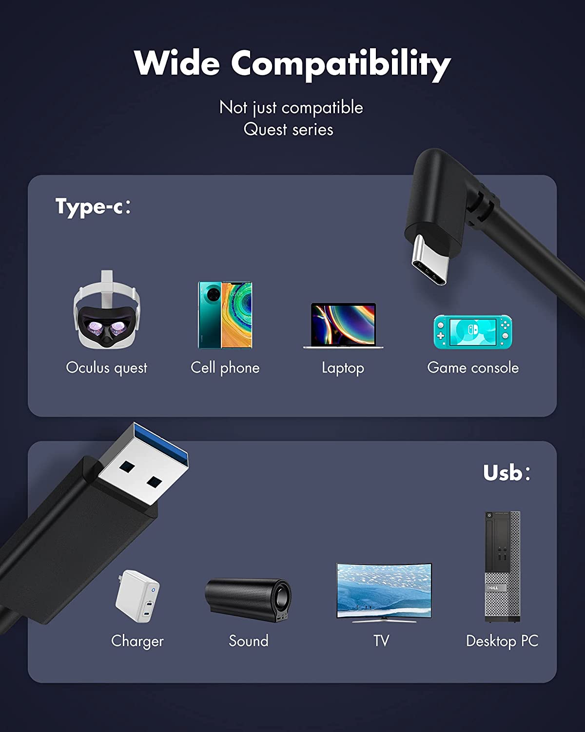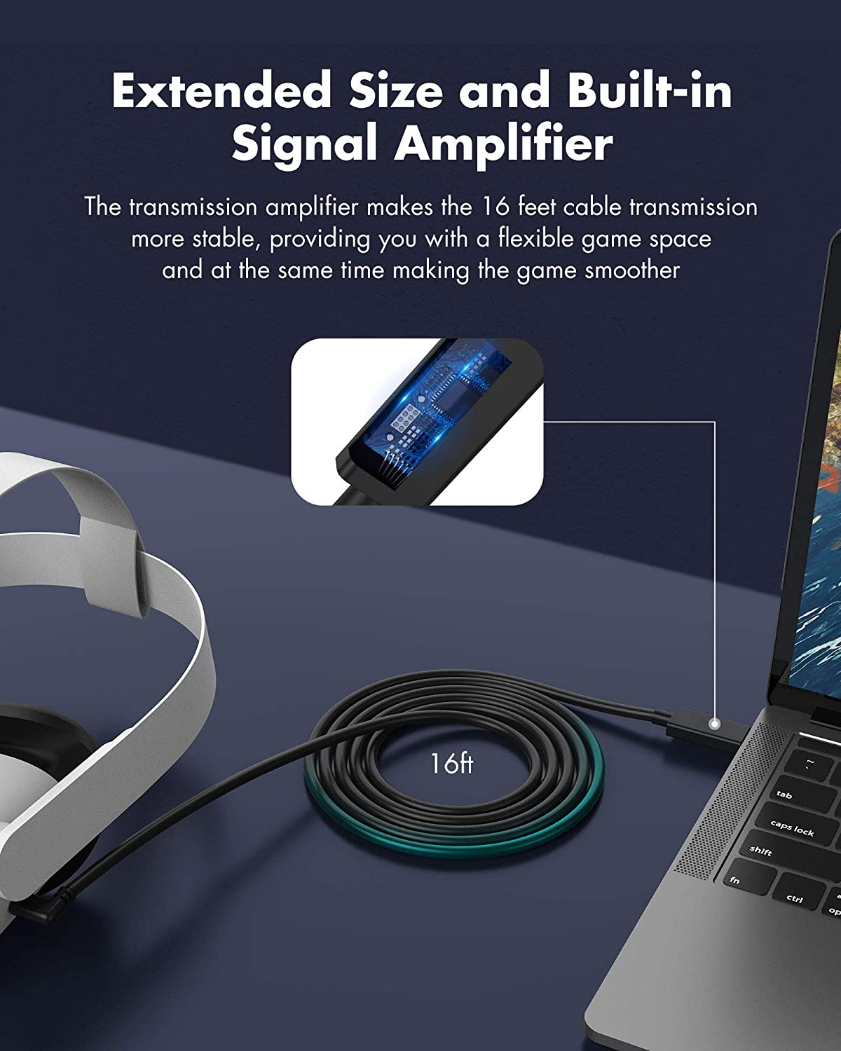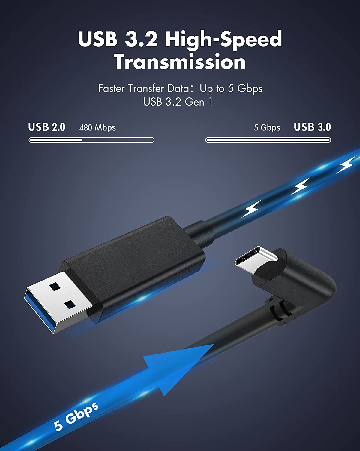 KIWI design Link Cable 16 Feet (5 Meters) for Oculus Quest 2, High Speed Data Transfer USB 3.2 Gen 1 Type-C Cable Compatible for Oculus Quest 1 and Quest 2 to a Gaming PC, Black