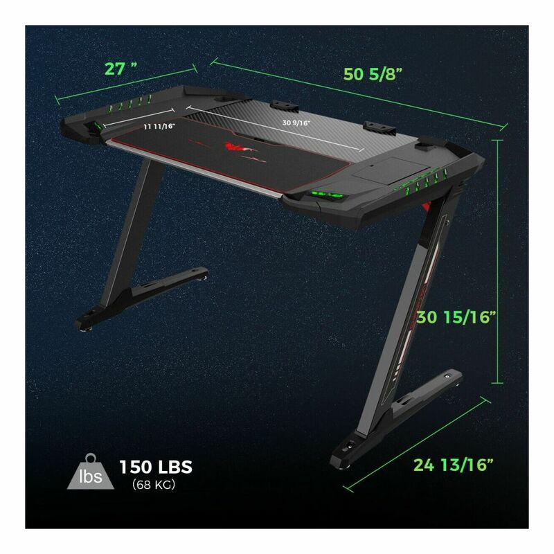 - Large cool surface: ·The 50.6”L x 27”W carbon fibre textured work surface is pretty cool, smooth and durable, perfectly meeting your need to work or game.