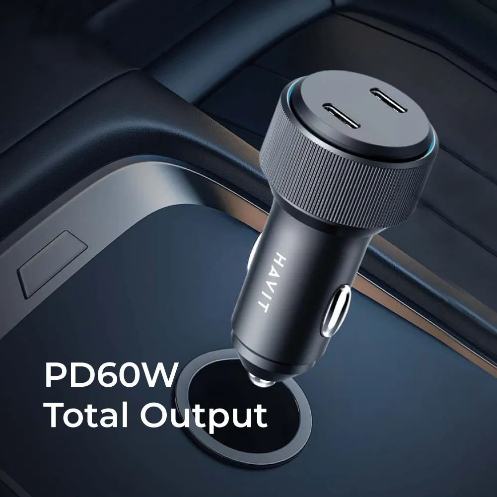HAVIT HVCC-CC2014 PD30W + PD30W USB-C Fast Charge Dual Port Car Charger