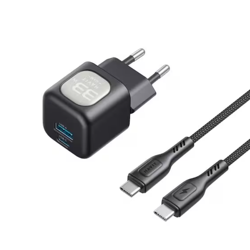 Havit UC233 33W GaN Travel CHARGER WITH USB-C TO USB-C Cable