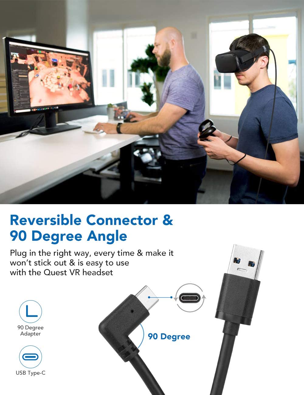 - 90-degree angle - The link cable has USB C 90 Degree Angle End so it doesn't stick out and easy to use